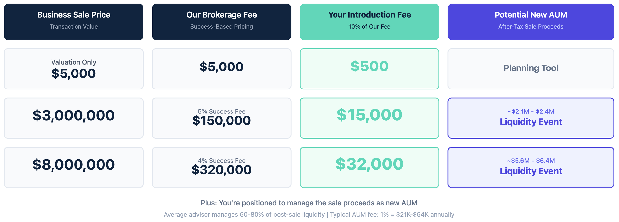 Plus: You're now managing $3M-$8M in new AUM from the sale proceeds.